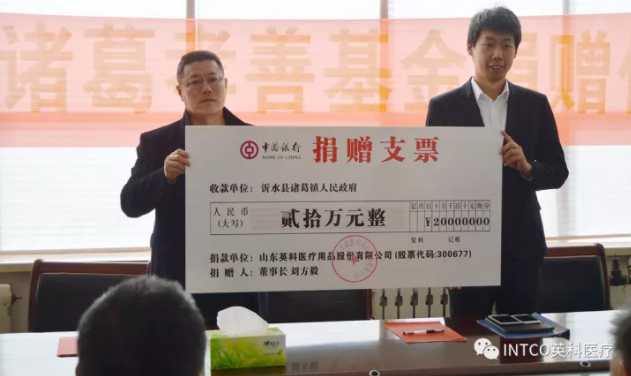 12月6日,山东乐虎lehu医疗用品股份有限公司(股票代码:300677)董事长刘方毅先生向革命老区沂水县诸葛镇捐赠孝善基金人民币20万元,助力诸葛镇政府孝善事业的运营和开展,董事长助理穆天雨代表公司参加捐赠仪式。